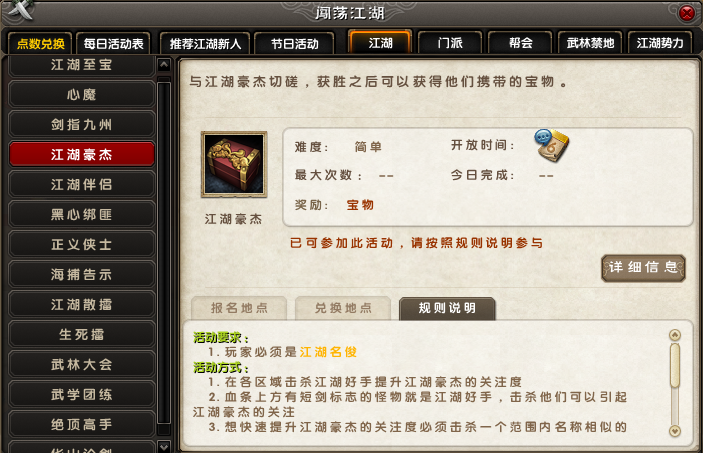 1.江湖豪傑玩法(玩家必須是江湖明俊):