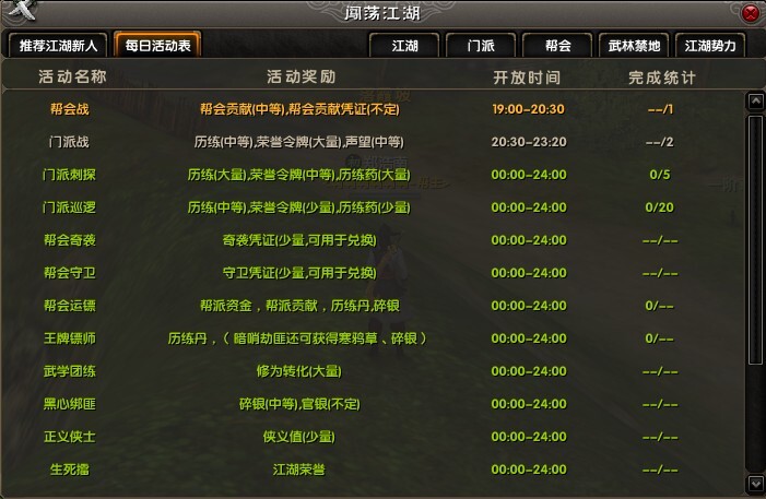所以,先跑到你所要刺探的目標門派地圖之內,然後按照上面的順序參加門派刺探吧。