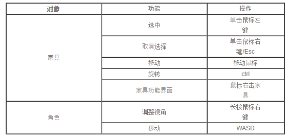 在非裝飾狀態下,鼠標左鍵點擊家具,將出現功能列表,選擇後玩家可使用家具提供的特殊功能。