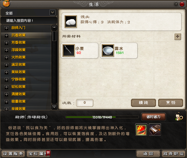 廚師是製造系生活職業之一,可以製作各類即可果腹又可增強角色屬性的食物。