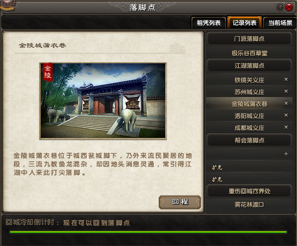 - 刪除落腳點:點擊記錄列表中任意落腳點後面的“X”便可刪除該落腳點(門派落腳點無法刪除)。