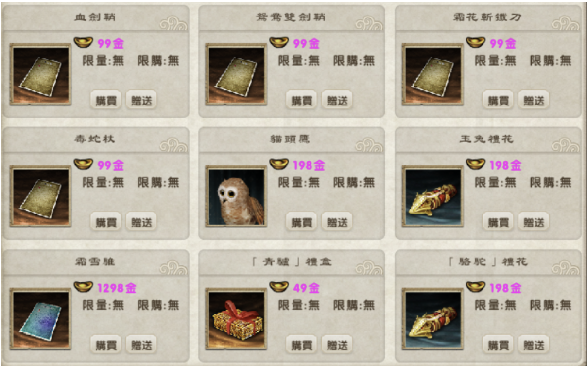 為饋贈廣大玩家對“九陰真經”的支持,官方本次特別推出商品,有需求的玩家敬請保握機會唷!