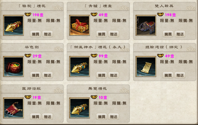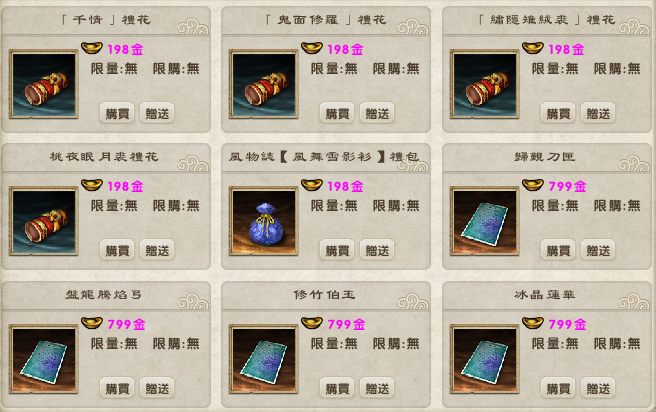 為饋贈廣大玩家對“九陰真經”的支持,官方本次特別推出商品,有需求的玩家敬請保握機會唷!