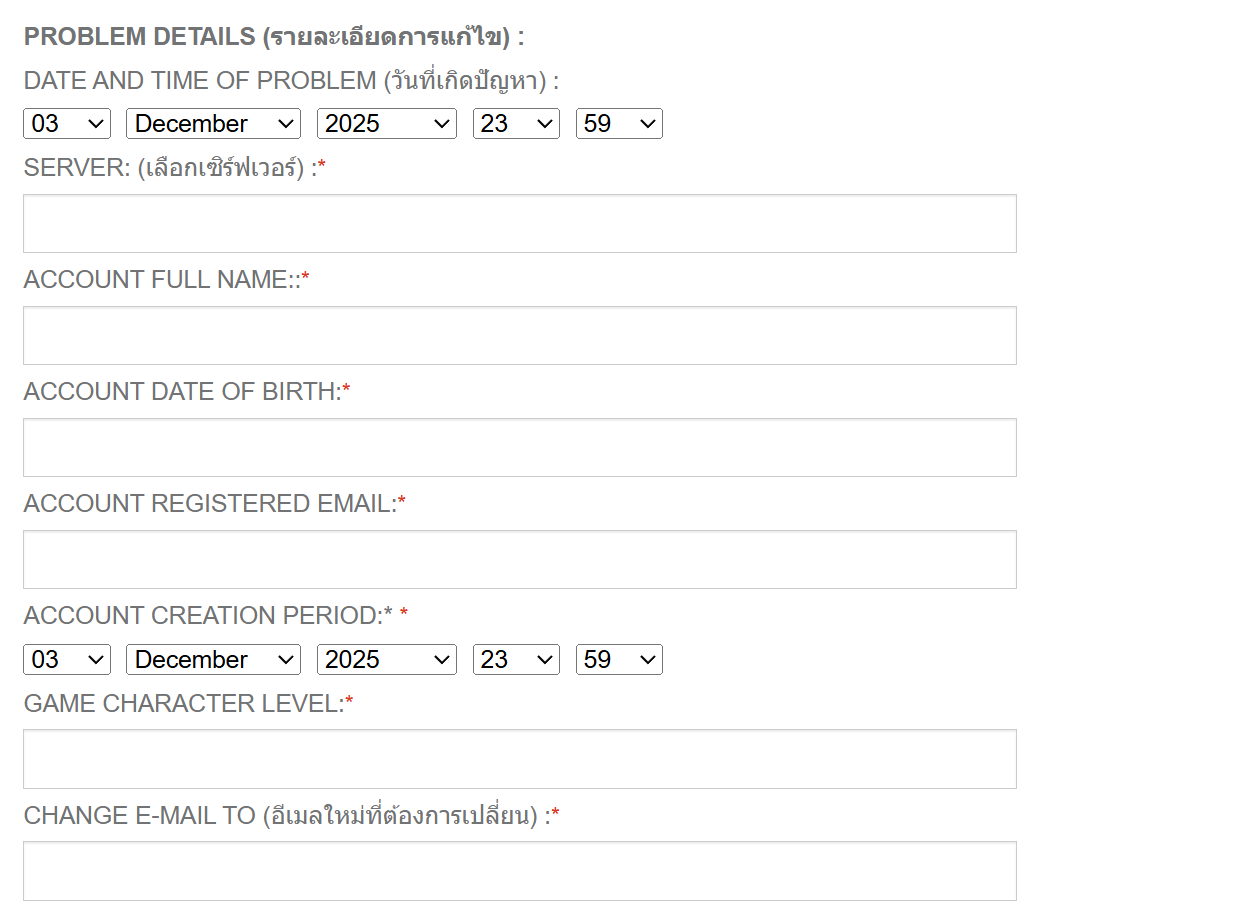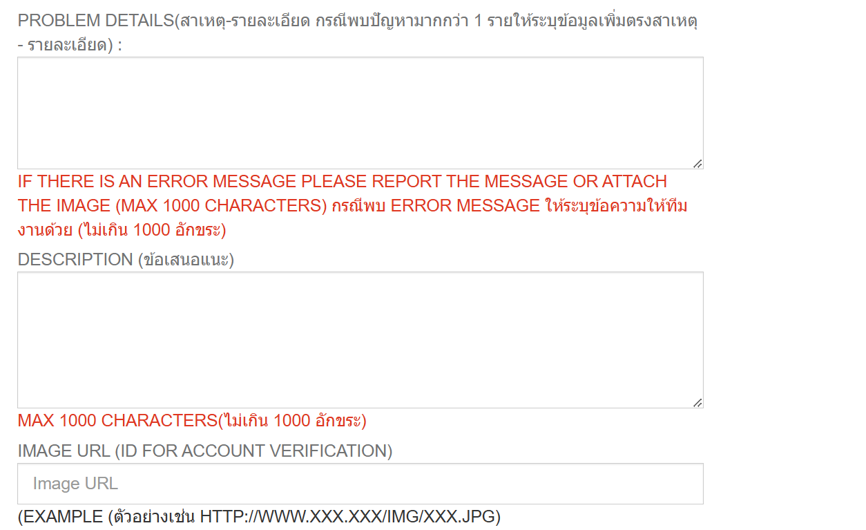 範例如:帳號問題、技術問題、遊戲bug、充值問題等。